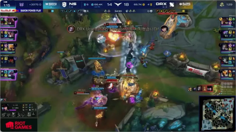 21分钟,DRX找到机会击杀NS中辅,随后拿下大龙